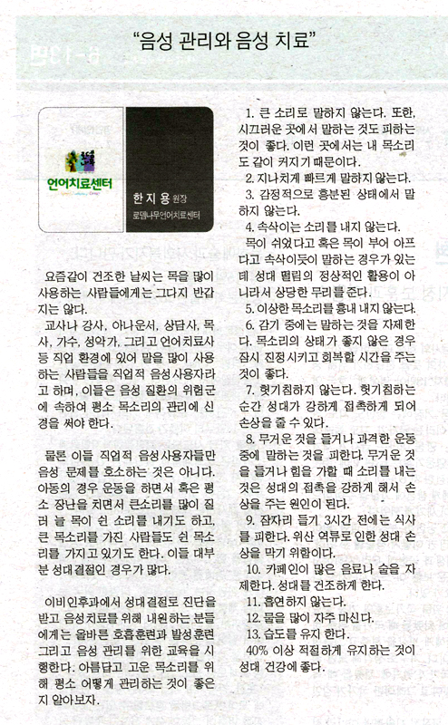 ¡°À½¼º °ü¸®¿Í À½¼º Ä¡·á¡±